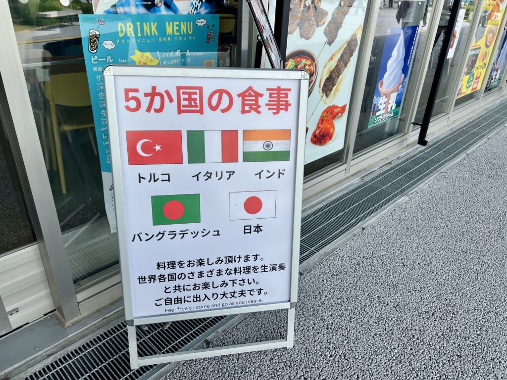 西口フードコートでは、トルコ・イタリア・インド・バングラデシュ・日本のメニューが楽しめます。 本格的なスパイス料理からソフトクリームまで、世界各国の味が一か所で楽しめるのが魅力です。